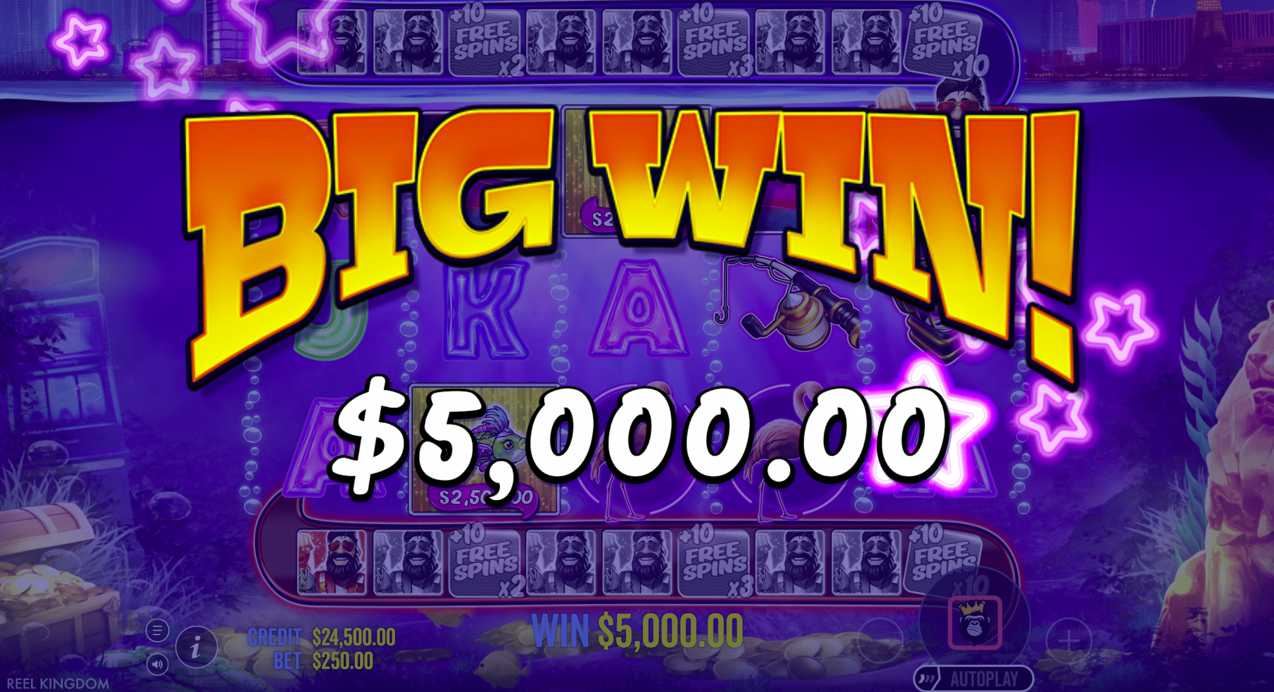 - Money Symbols (Fish with cash values): These can appear during both base game and free spins. In the bonus round, if a fisherman wild lands, it collects visible money values for cash prizes. :contentReference[oaicite:11]{index=11}